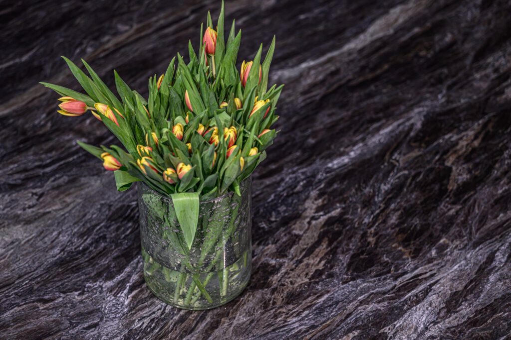 Materjalidest on köögis on kasutatud matti rohelist nanotehnoloogiaga viimistlust Matcha Sweet. Mööblile lisab elegantsust ja sära kuldsed käepidemed. Töötasapinnaks on 20mm paksune Dektoni kivi Nara. Nii söögilaud kui ka väike kohvilaud on valmistatud Cosentino kividega. Söögilaua plaadiks on looduskivi Madeira ning kohvilauaks Sensa Cristalo. Tehnika on kokku pandud Boschi toodetest.