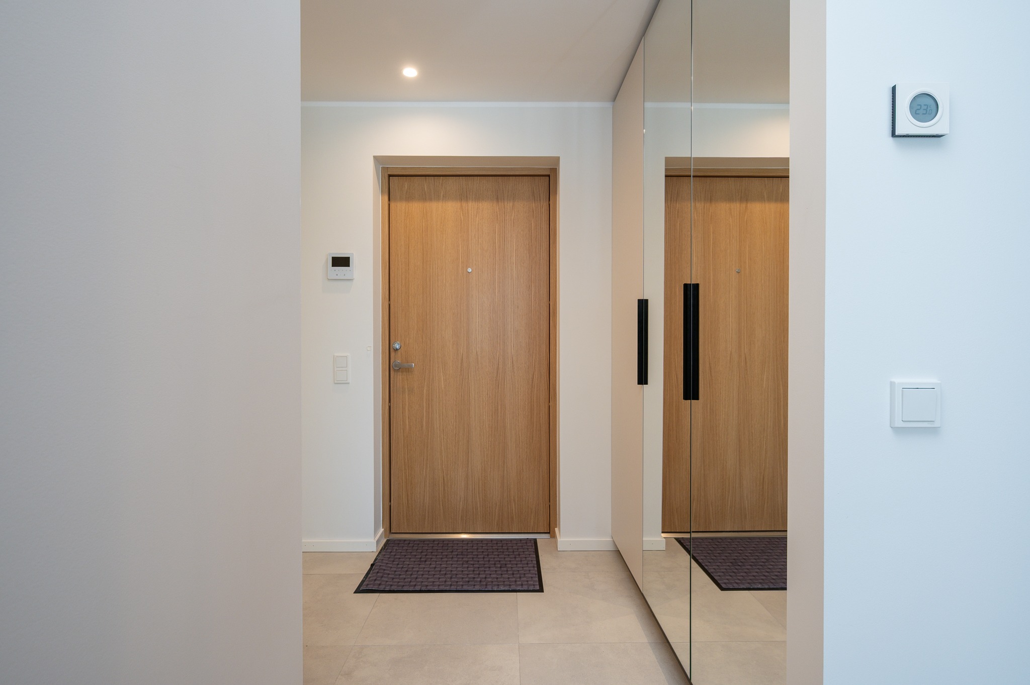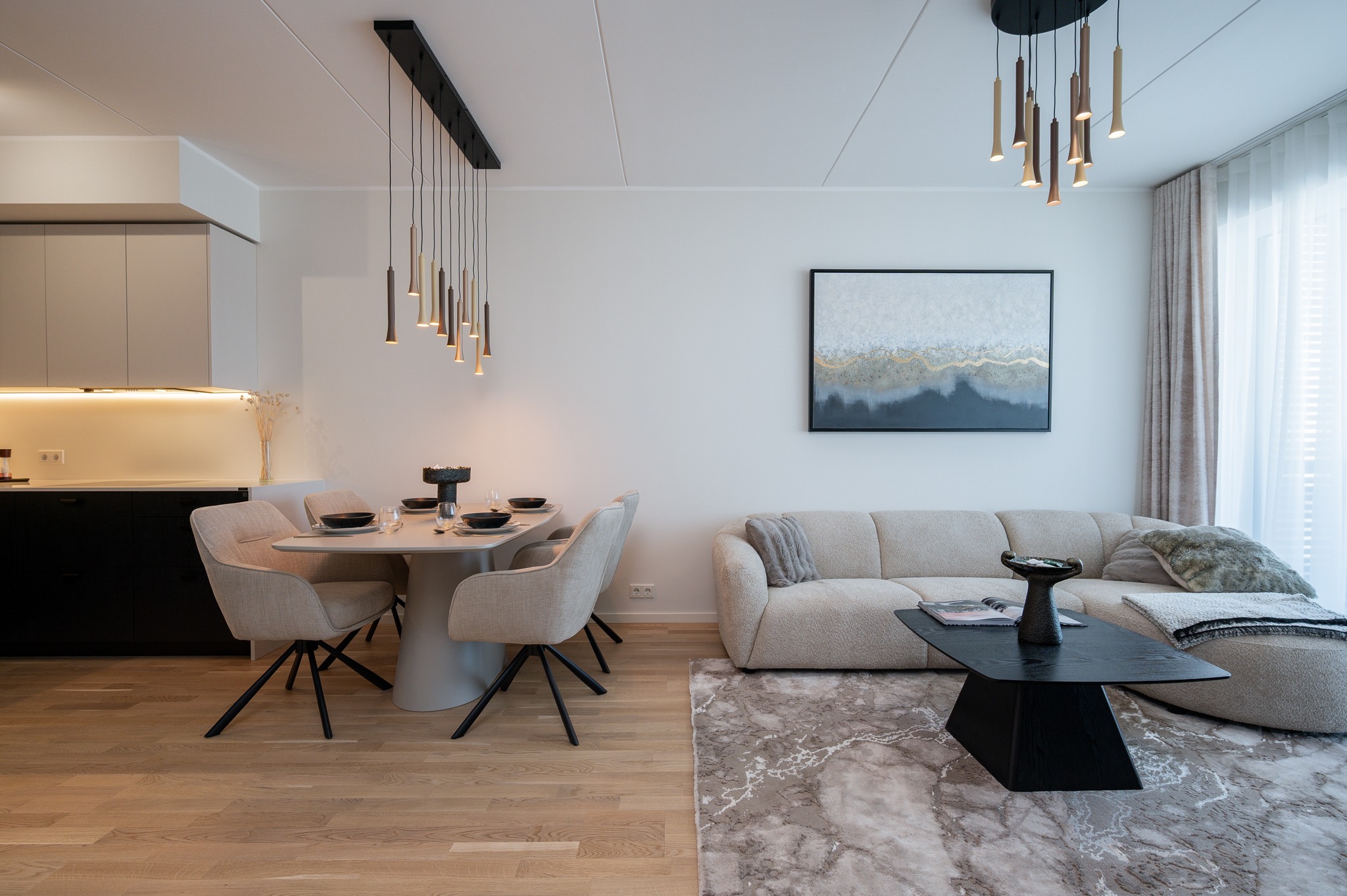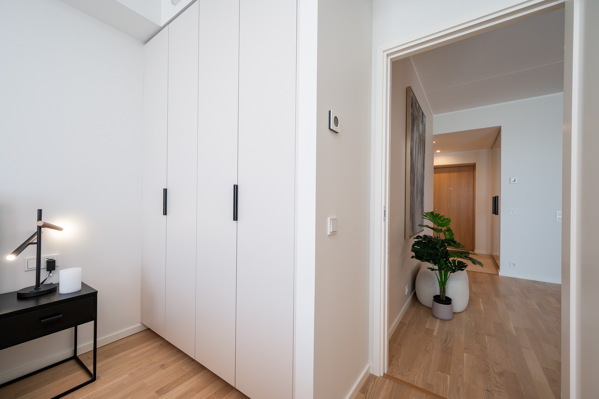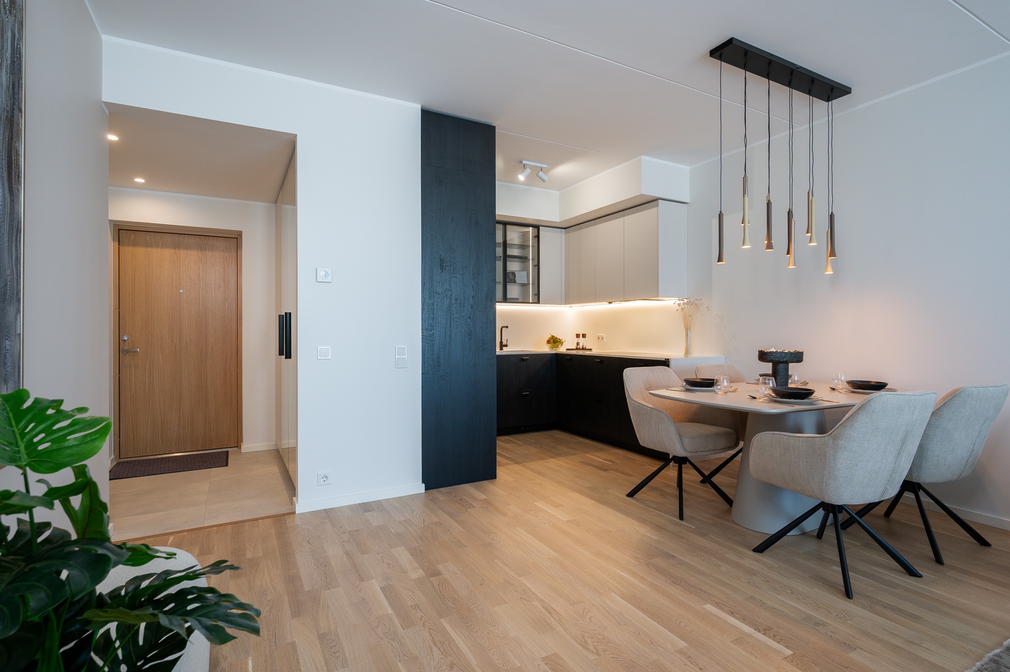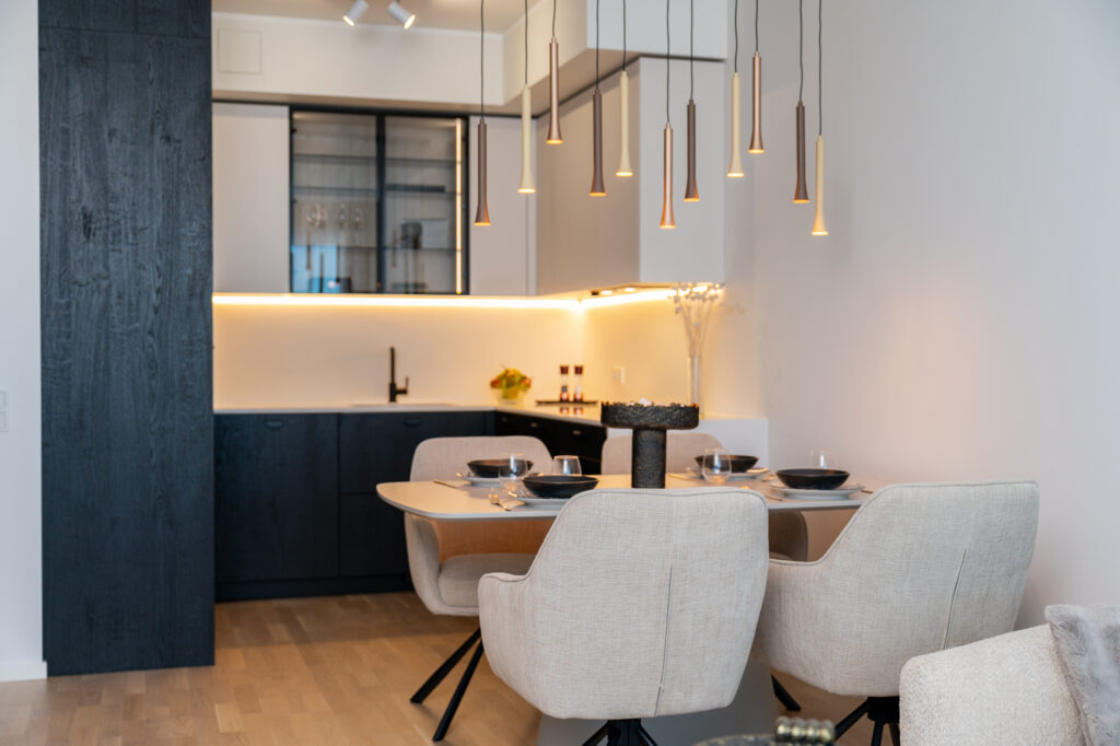 Siin näete stiilset korterit, mis asub Merko Ehituse Erminurme arenduses Tartus. Schmidti poolt on siia tehtud köögimööbel, magamistoa- ja esiku garderoobid ning vannitoa mööbel.