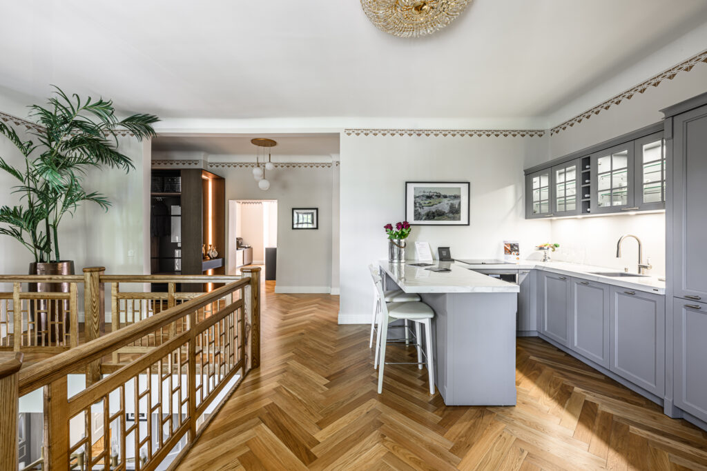 Siin on suurepärane näide sellest, kuidas on võimalik meie salongi näidiskööki sobitada täiesti teise ruumi. Siin näete esialgset lahendust meie salongis ning allpool sama kööki kliendi kodus.