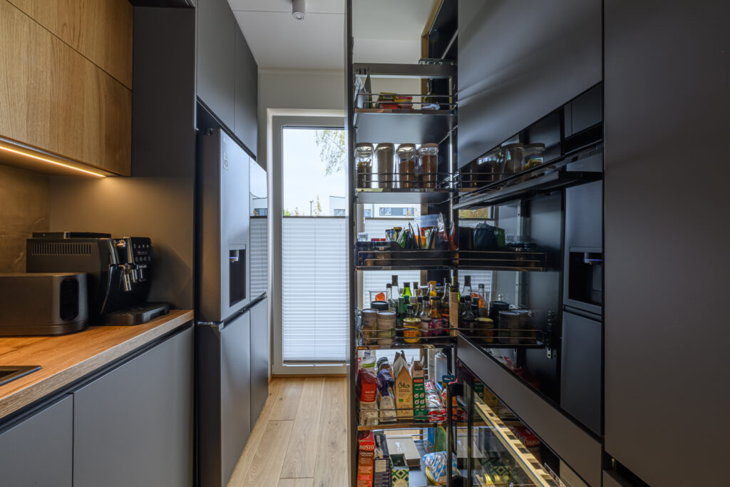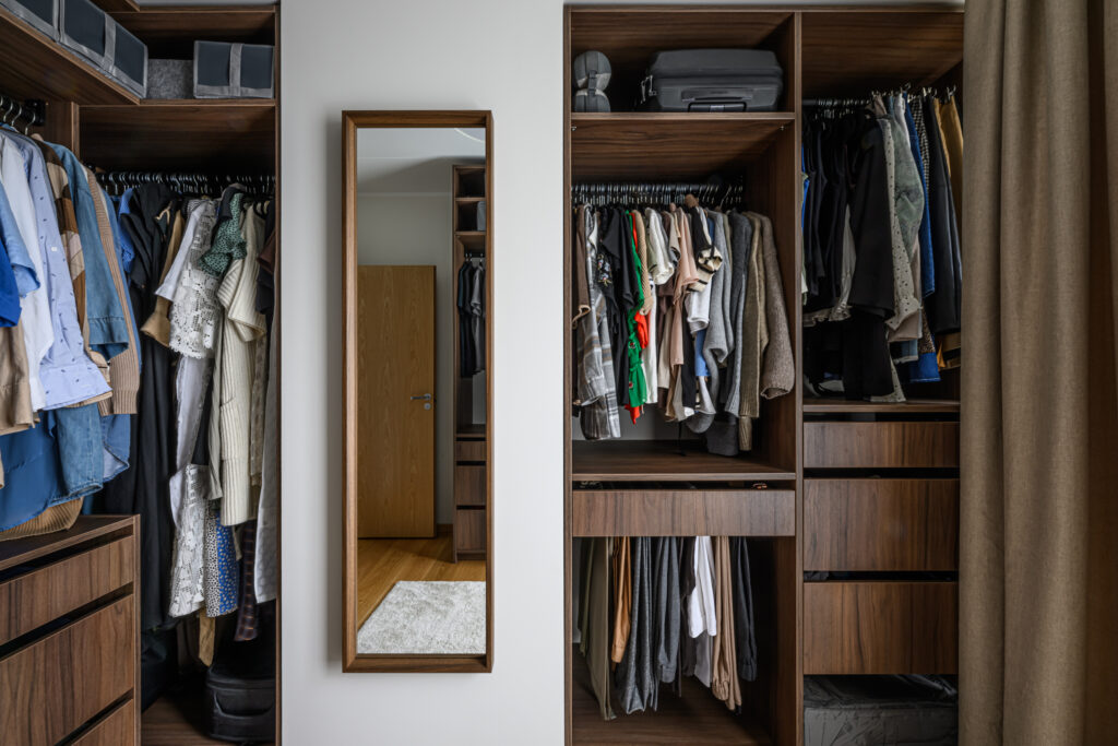 Walk-in garderoob asub suures ruumis ning on hoolikalt läbi mõeldud, et igale esemele oleks oma kindel koht. Materjaliks on siin 2025. aastal lisandunud puiduimitatsiooniga materjal Fox. Selleks, et tagada mööbli mugav kasutamine, on siia lisatud palju sahtleid, pükste sahtleid ja stangesid.