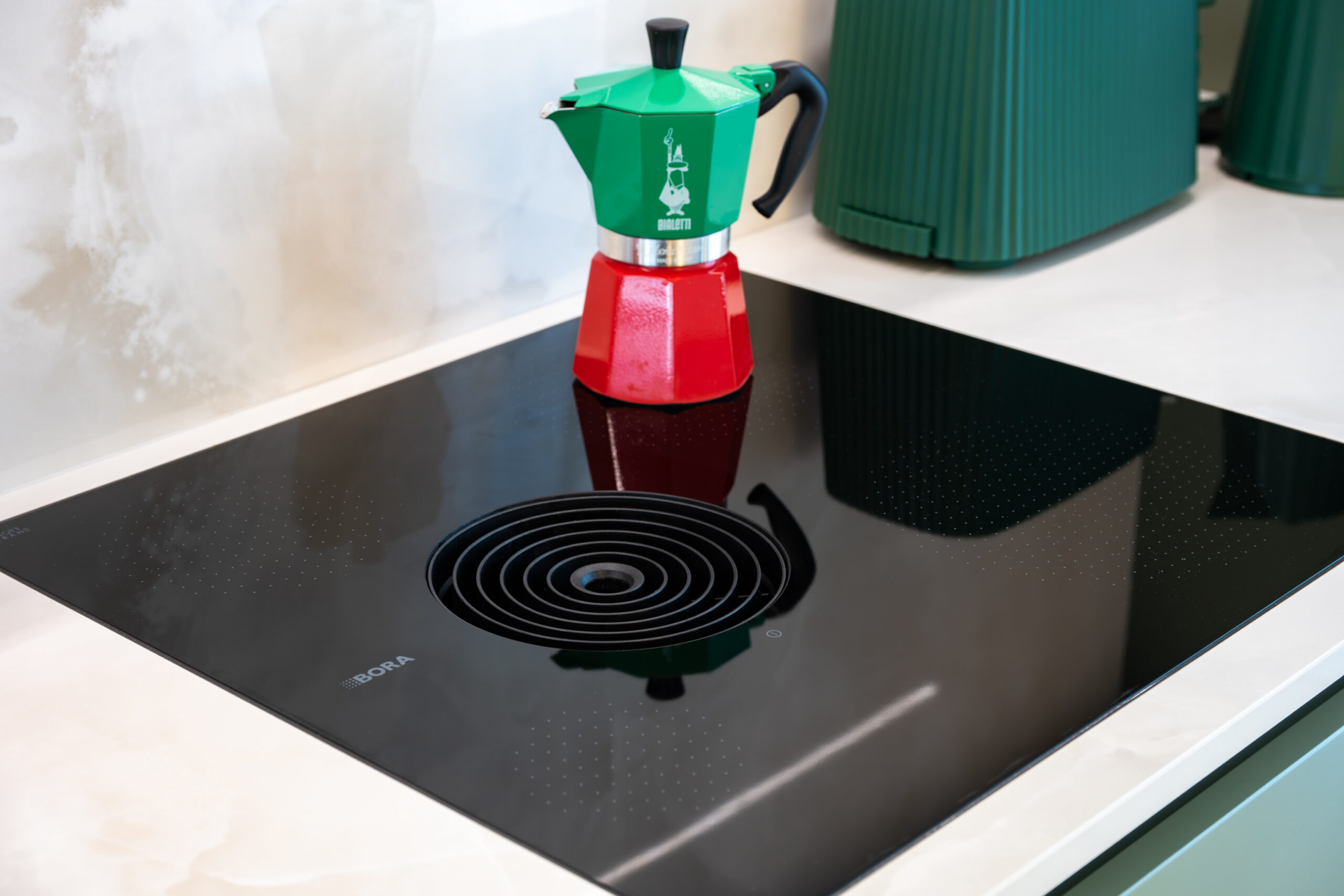 Rõõm on tuua teieni üks väga eriline ja omanäoline projekt! See ülimalt vinge retro stiilis köök on tehtud rohelise värvitud uksega Mossa. Värvitud ukse eeliseks on 5 kihti värvi, mis tagab selle kestvuse ja kvaliteedi. Töötasapinnaks ja taustaks on intensiivset rohelist mahendav Dekton Helena. Tehnika valis meie klient nii Bora kui ka Miele tootevalikust.